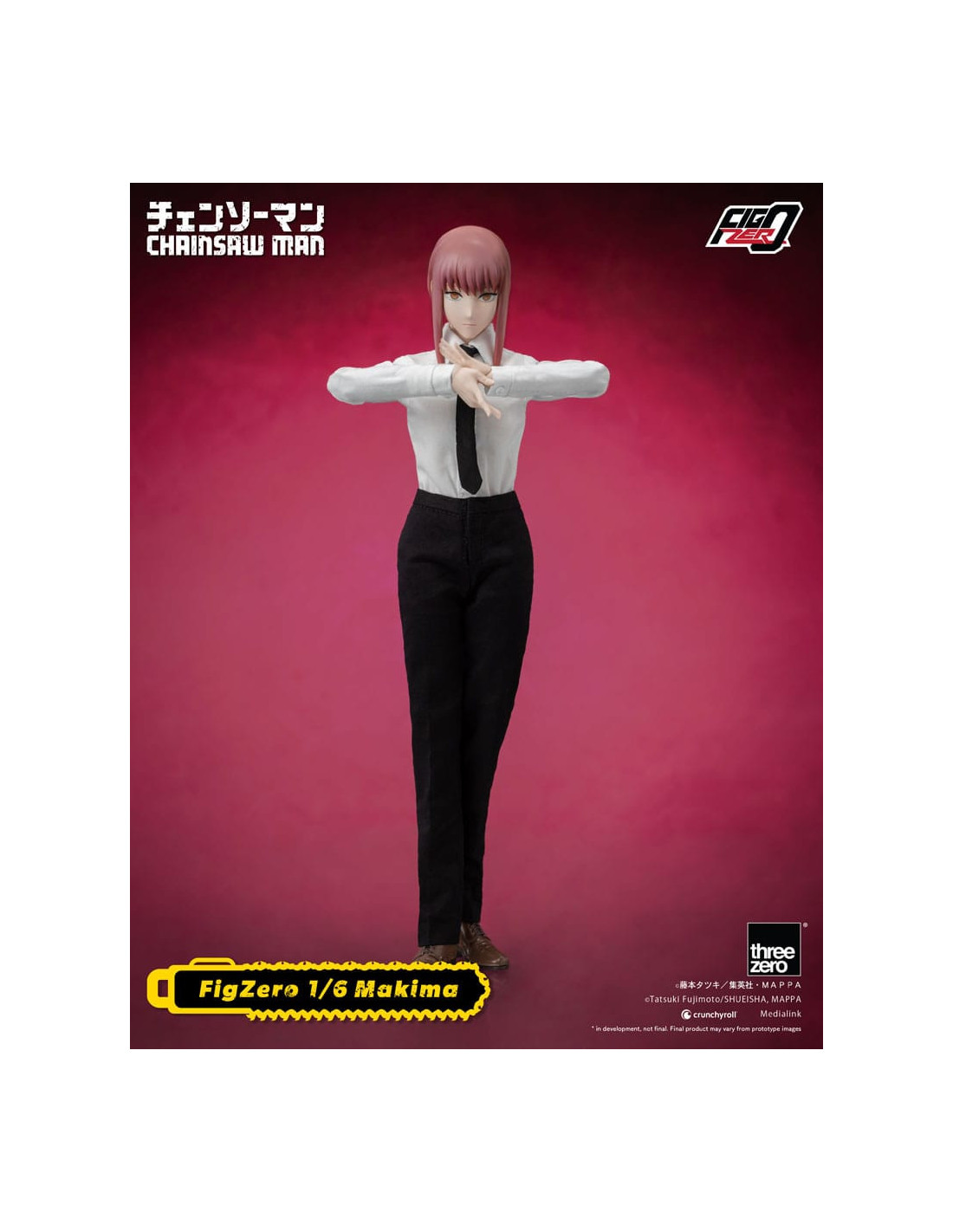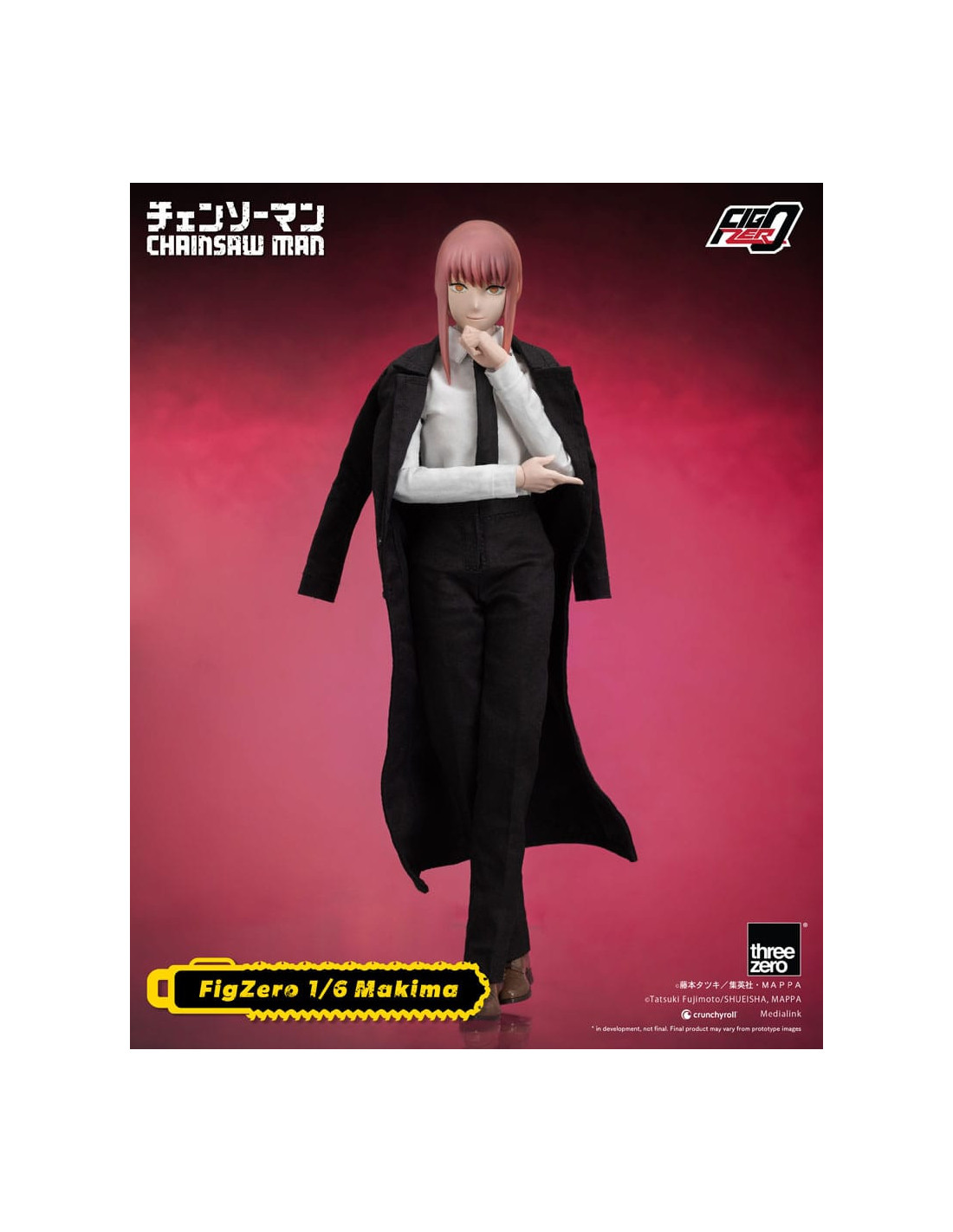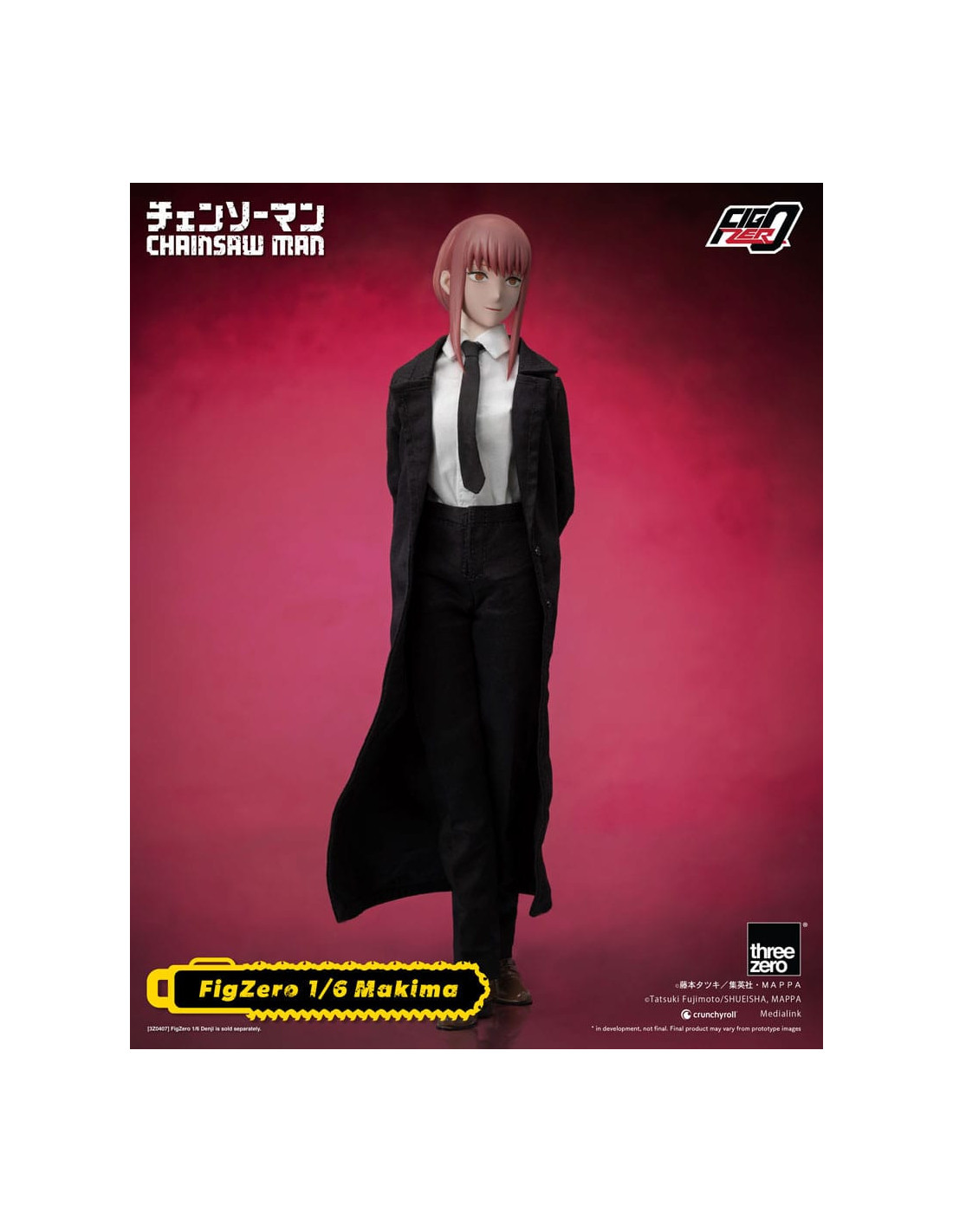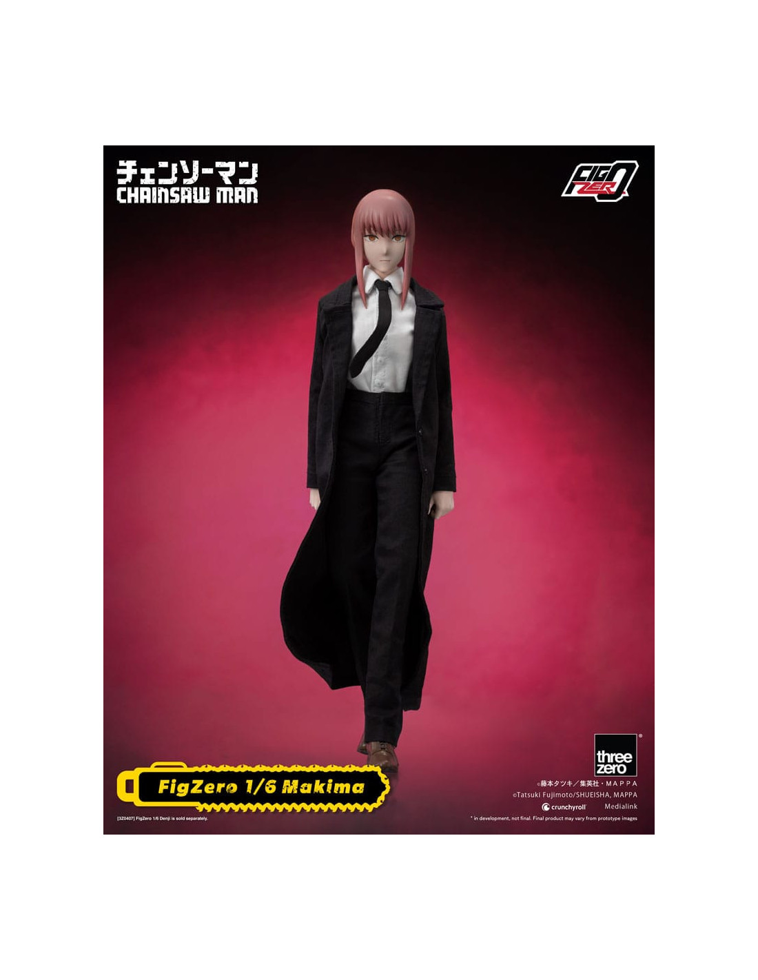 The new item from the FigZero 1/6th scale articulated figure series based on the anime series CHAINSAW MAN is the beautiful, mysterious, and deadly Makima! With her highly detailed head sculpt and tailor-made Public Safety Devil Hunters uniform with overcoat, this collectible figure captures her unforgettable appearance as seen in the original anime series.