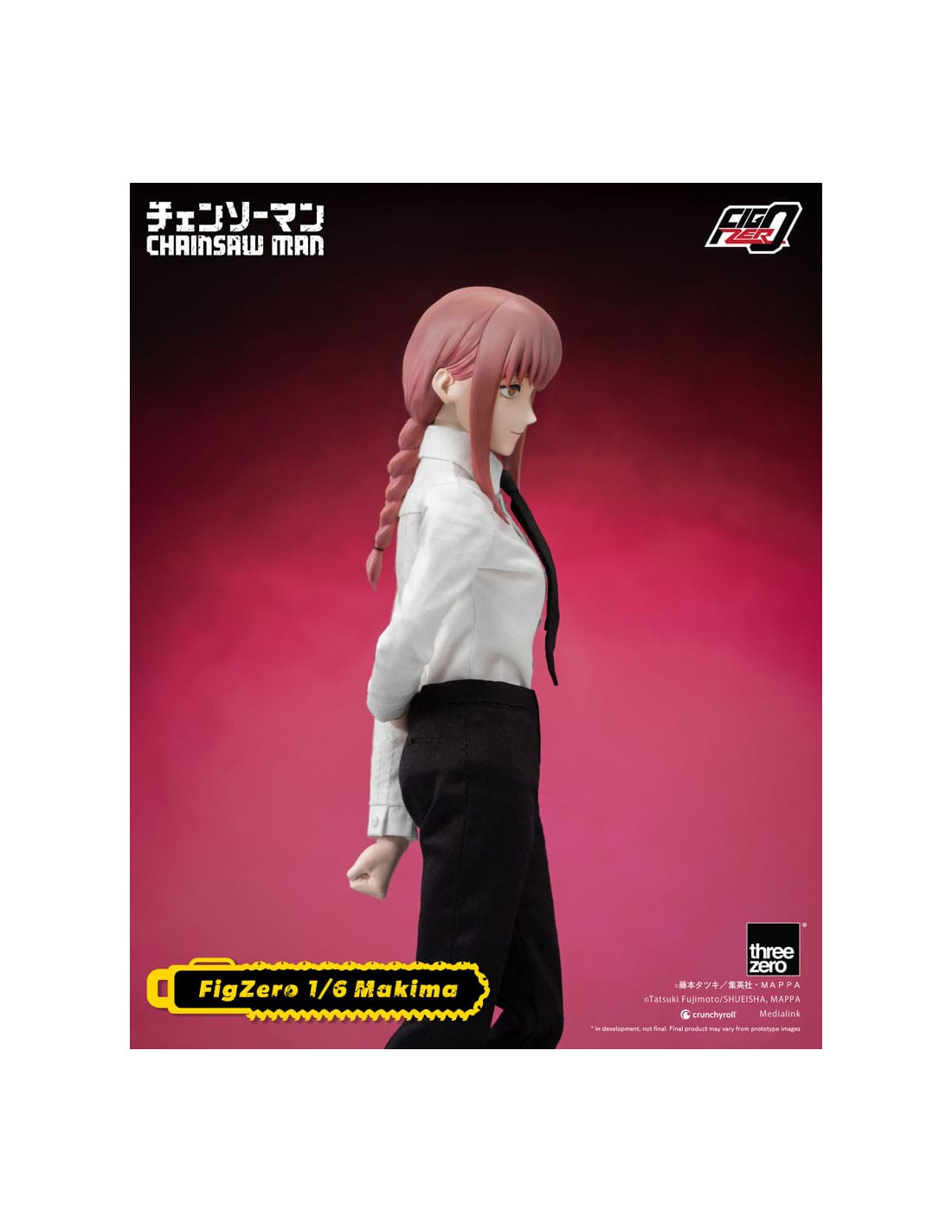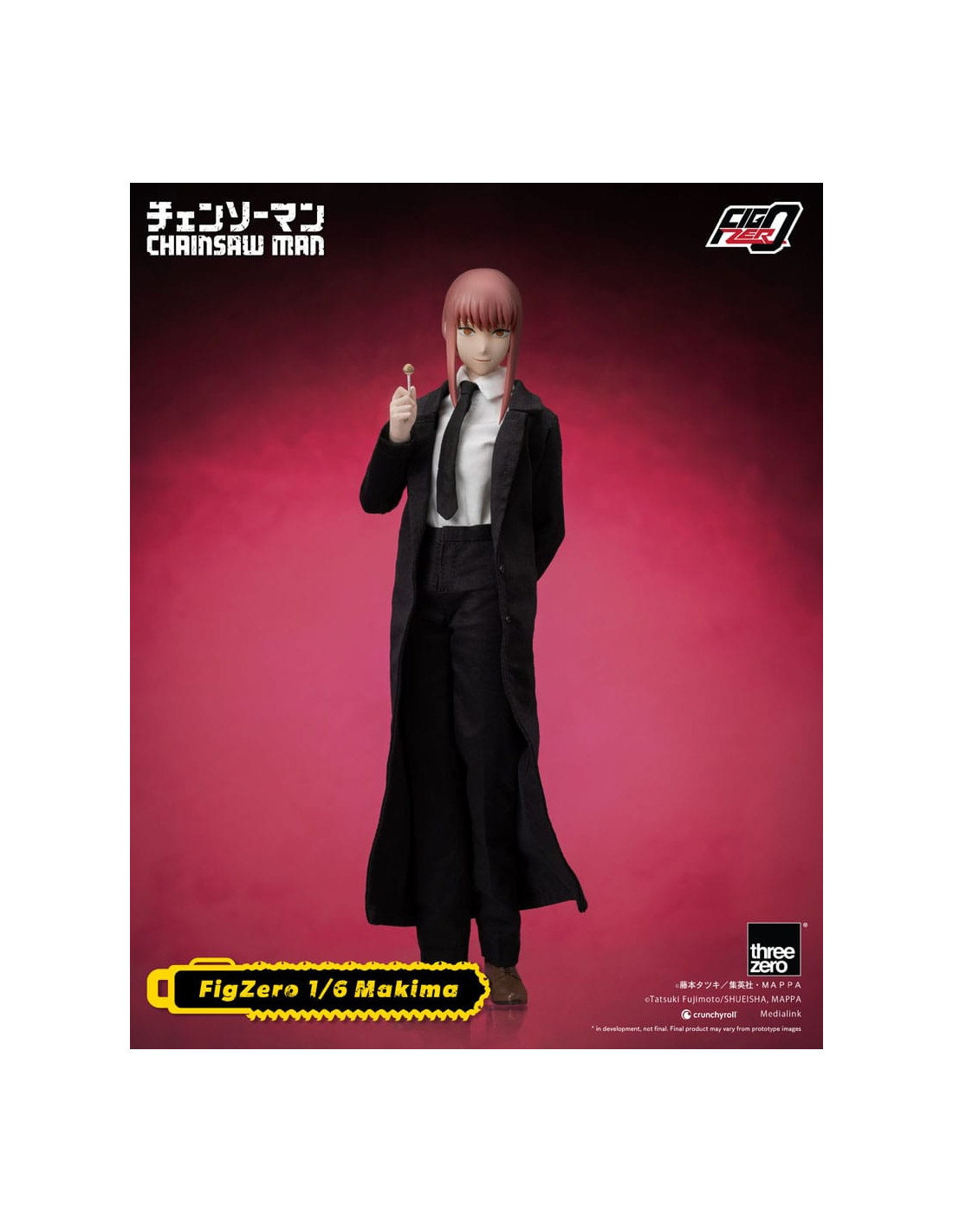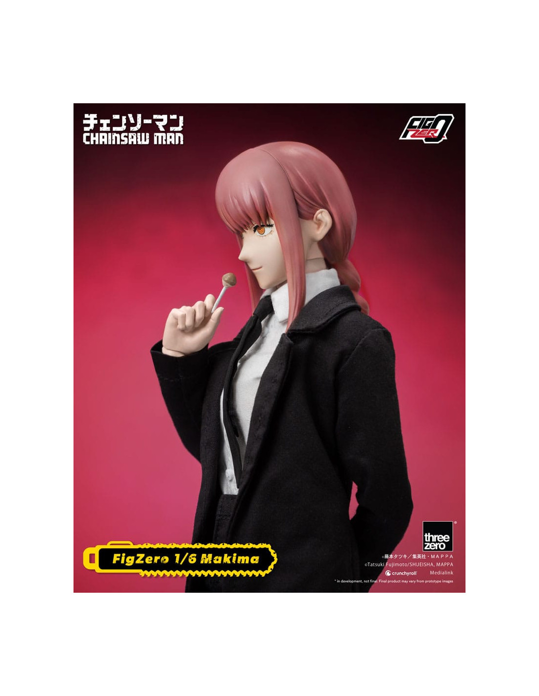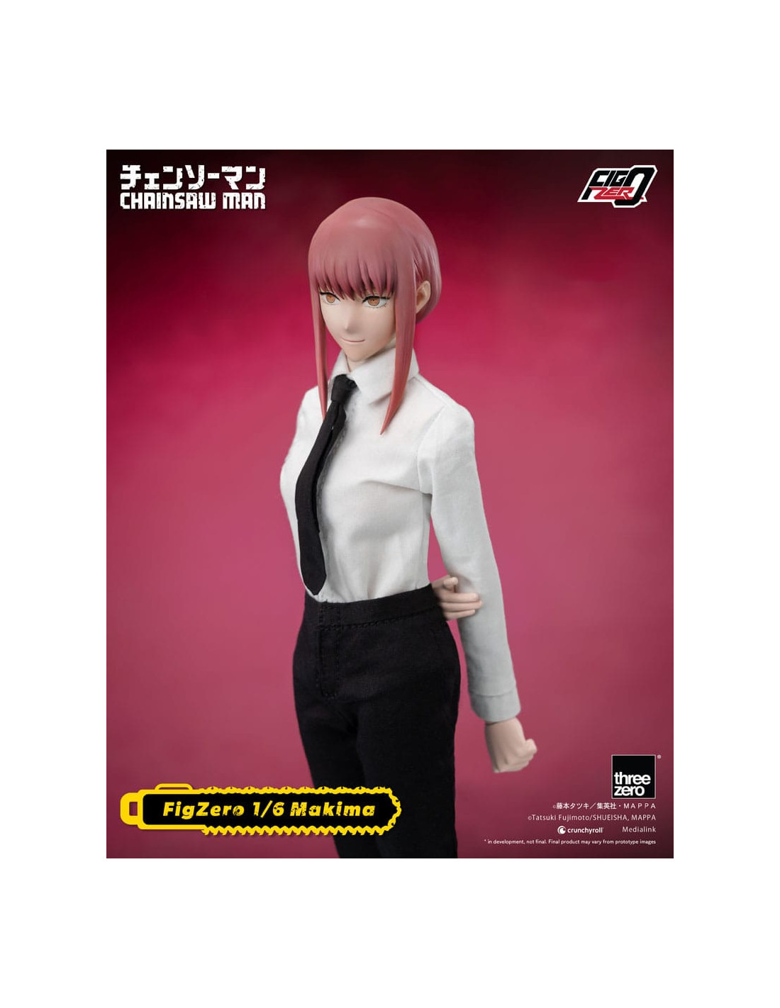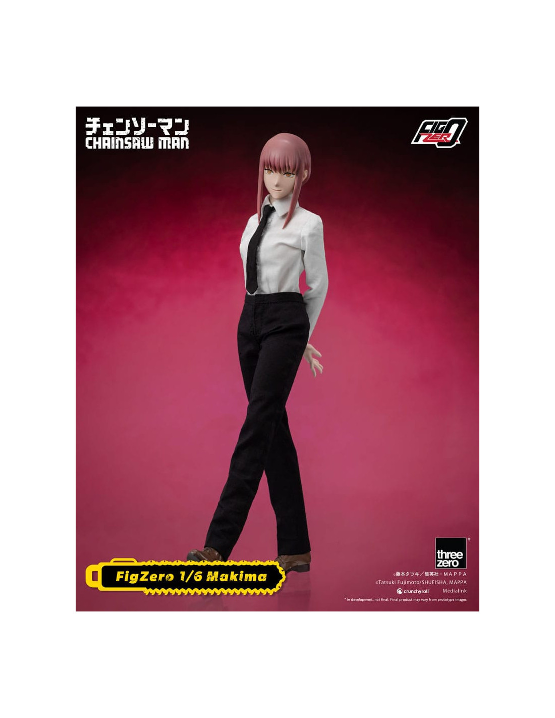 The new item from the FigZero 1/6th scale articulated figure series based on the anime series CHAINSAW MAN is the beautiful, mysterious, and deadly Makima! With her highly detailed head sculpt and tailor-made Public Safety Devil Hunters uniform with overcoat, this collectible figure captures her unforgettable appearance as seen in the original anime series.