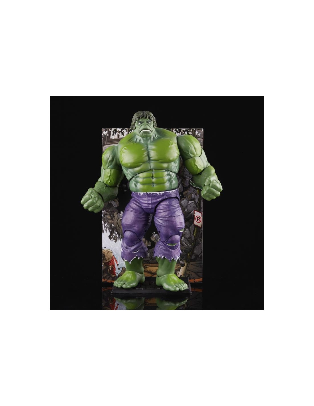PREMIUM ACCESSORIES AND BACKDROP: The Series 1 Hulk figure comes with 6 premium accessories and a comics-inspired reversible backdrop for display.