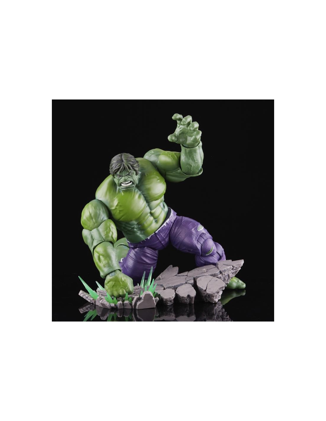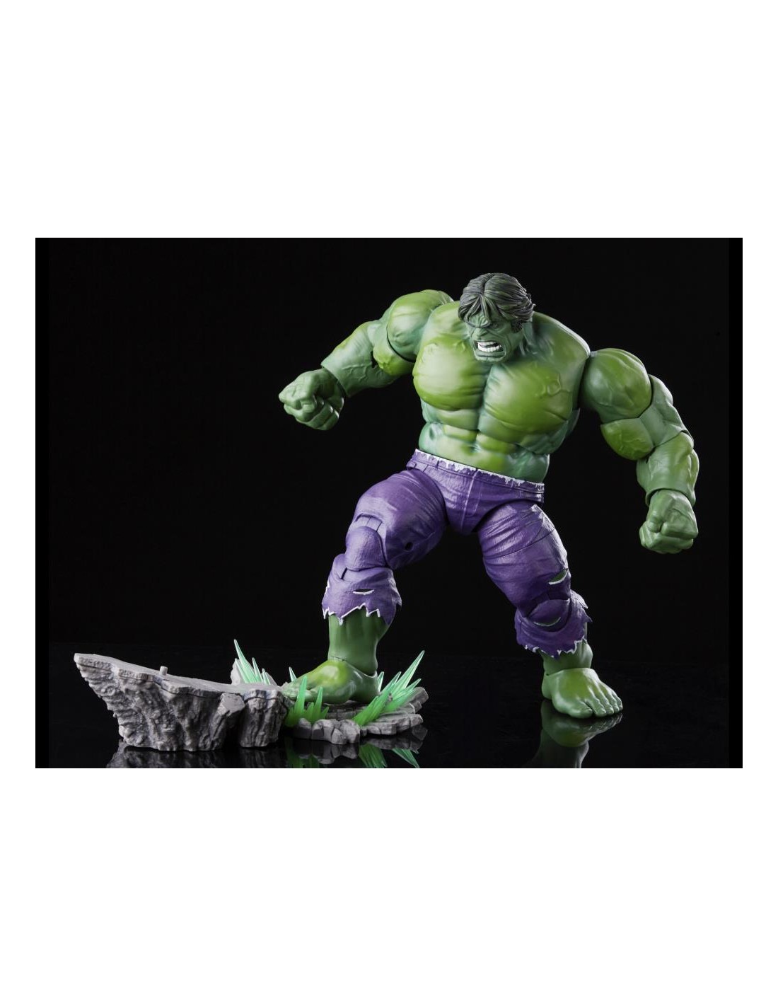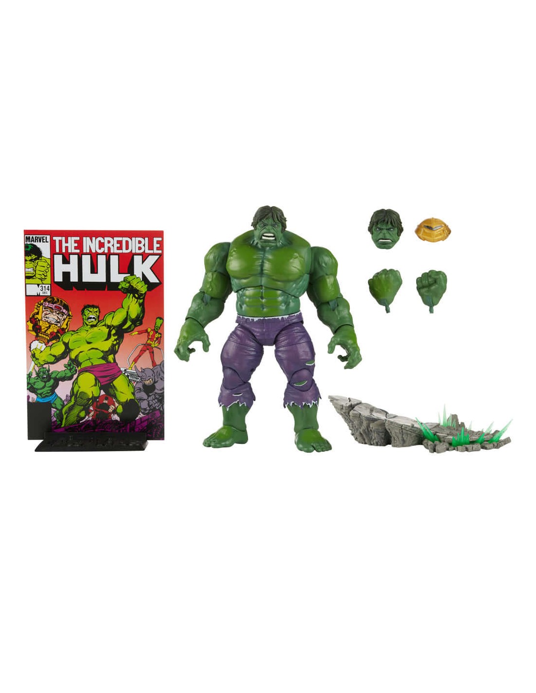 GAMMA-POWERED DISPLAY: With alternate head and hands, an FX base, a Marvel Legends display base, and a damaged Mandroid head, the Series 1 Hulk is ready to take pride of place on any collector’s shelf!