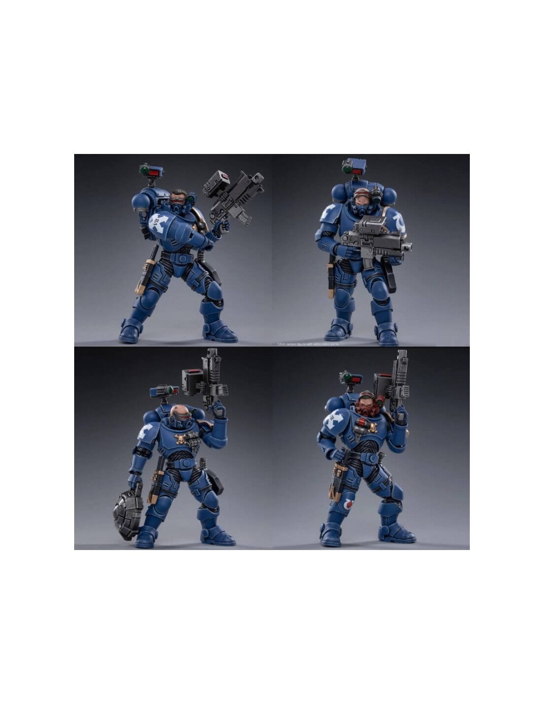 JOYTOY presents its line of figures based on the popular Games Workshop franchise, Warhammer 40000. This time it is the set of 4 units of the Ultramarines Primaris Incursors. These are 4 articulated 1/18 scale figures (12 cm) reproduced with the highest quality and fidelity. It includes various accessories to customize them, bolter rifle, bolter pistol, cartridge belts, knives and sheaths, prismatic viewfinder, energy generator backpack and alternative hands.