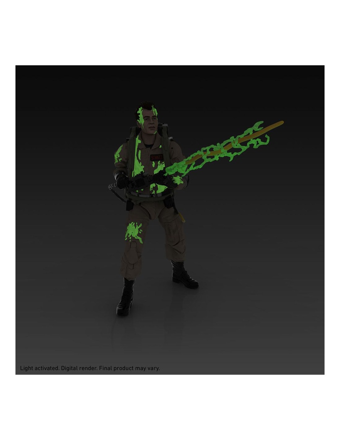 FIGURA QUE BRILLA EN LA OSCURIDAD: Esta figura de acción de Ray Stantz cuenta con decorado ectoplásmico que brilla en la oscuridad para darle ese toque de "baba" sobrenatural. Para cargar el efecto de brillo en la oscuridad, coloca la figura bajo la luz